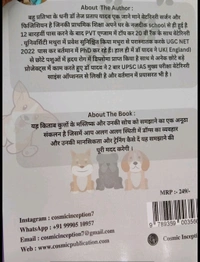 यह किताब कुत्तों के मस्तिष्क और उनकी सोच को समझाने का एक अनूठा संकलन है जिसमें आप अलग अलग स्थिती में डॉग्स का व्यवहार और उनकी मानसिकता और ट्रेनिंग कैसे दें यह समझाने की पूरी मदद करेगी ।